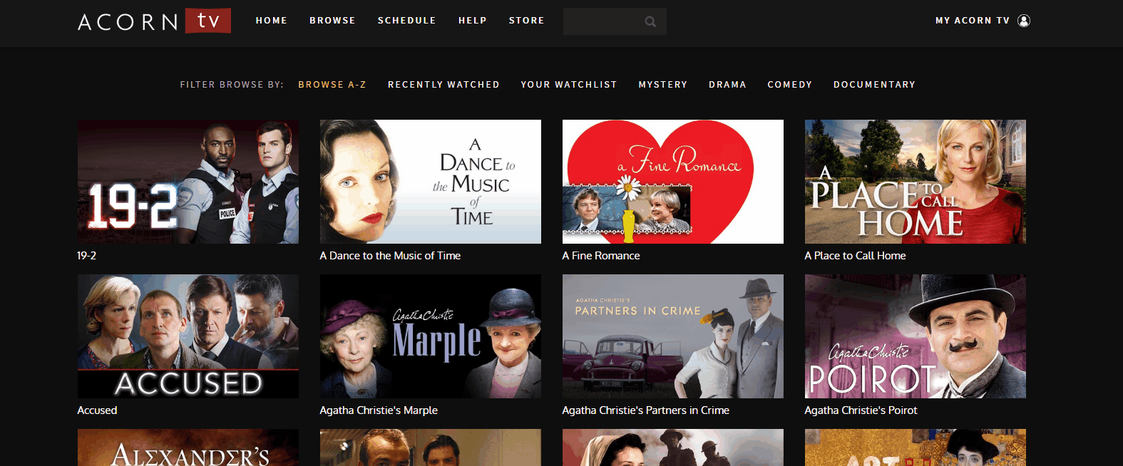 To browse between series/seasons of Acorn TV programs, first click on the program you'd like to view.