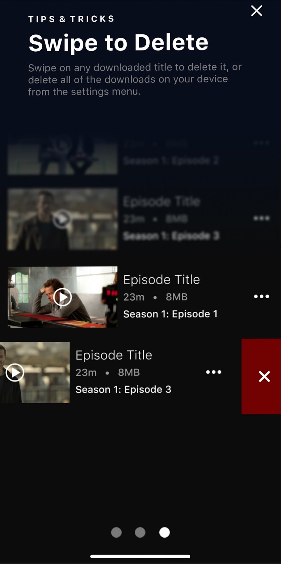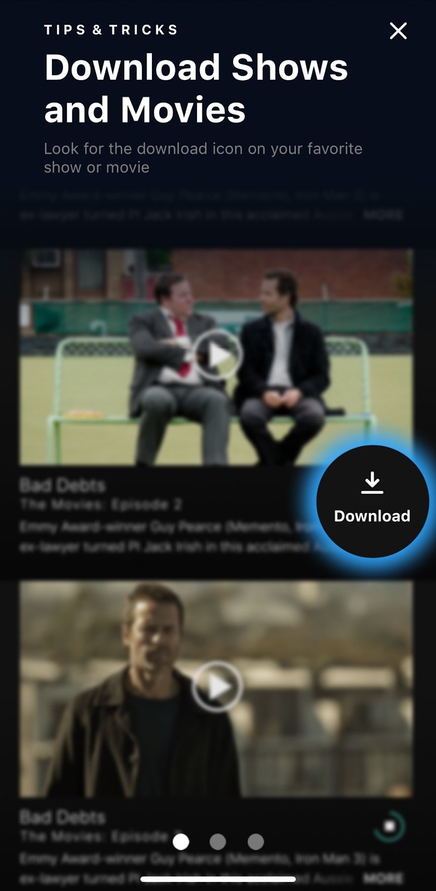 Tap on any TV show or movie and look for the Downloads icon (downward facing arrow) to see whether it can be downloaded. Not all titles are available for download.