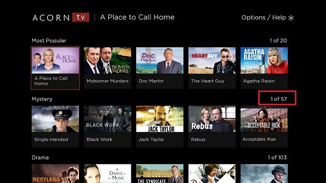 From the Home screen or the Browse screen, you will see a total number of shows for a specific genre / category displayed above the shows: