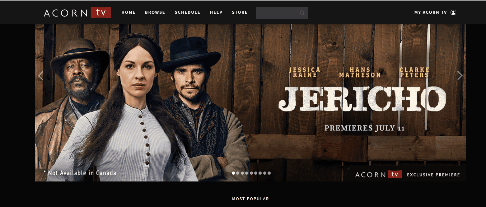 The search bar is located on the top menu on each page of Acorn TV. To search Acorn TV shows, simply type in the show or episode title you are looking for. Search will return franchise and episode level results.